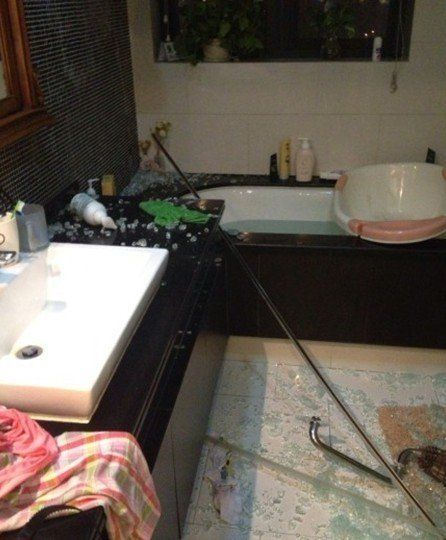吕女士介绍,13日晚上9时30分左右,她带着两个孩子(一个7岁,一个不到2岁)进浴室洗澡,孩子在浴缸内玩水,她自己在淋浴房内淋浴。约10分钟后,她走出淋浴房,正在浴室镜子前整理头发,身后的淋浴房玻璃门突然“嘣”地爆裂,大堆碎玻璃砸到她身上,顿时疼痛难忍。朱先生正在卧室看电视,听到浴室“嘣”地一声,急忙跑过去,看见地上一堆碎玻璃,妻子浑身是血口子。