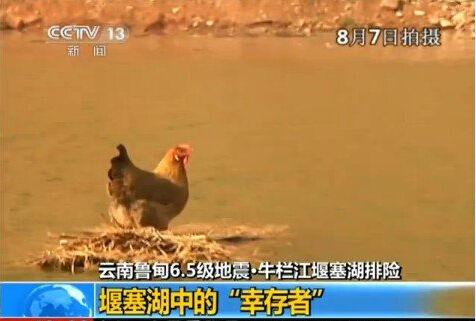 1只鸡在堰塞湖上漂流被救 身下有个鸡窝(图)