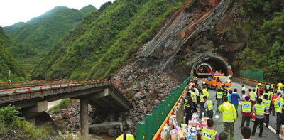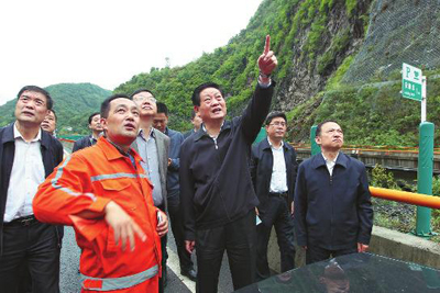 昨日上午,省委书记赵正永在西康高速小河段安沟隧道塌方现场指挥抢险工作 陕西日报记者 宋红梅 摄