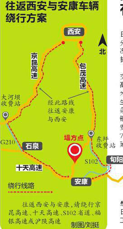 华商播报记者从陕西交通建设集团安川分公司了解到:目前包茂高速安康段的塌方路段,如抢修顺利,大约可能在10天后实行单向双幅通车,而恢复正常的双向通车,预计在60天以后。