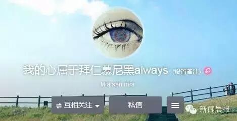 一个名叫“我的心属于拜仁慕尼黑always”的微博网友,