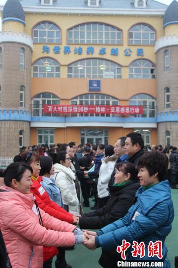 感恩节这天, 记者在该幼儿园的操场上看到,200人面对面站成三排,用90秒时间深情对视之后,双方尽情抒发许久不谈的感恩、拥抱、眼泪,反省自己因忙碌而忽略的青春、欢笑、陪伴。孩子们在一旁目睹了自己的亲人这段既感人又温馨的场景后,走到自己的亲人面前,递上一份事前准备好的礼物。