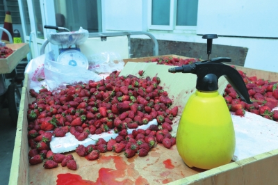 原标题:商贩喷不明液体烂草莓变“新鲜”