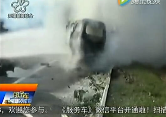无锡一辆面包车和一辆轿车相撞起火,现场腾起滚滚黑烟。消防员用高压水枪压制火势后发现面包车被烧得严重变形,驾驶员不幸死亡,死亡男子的妻子坐在事故现场嚎哭不止。据目击者称,事故发生时,丈夫将妻子使劲推出了车外,自己没能及时逃脱。 (来自:无锡电视台) 消防员用高压水枪压制火势后发现面包车被烧得严重变形,驾驶员被卡车内不幸死亡,死亡男子的妻子坐在事故现场嚎哭不止。 (来自:无锡电视台) 据目击者称,事故发生时,丈夫将妻子使劲推出了车外,自己没能及时逃脱。 (来自:无锡电视台) |
