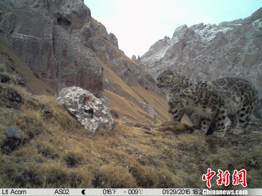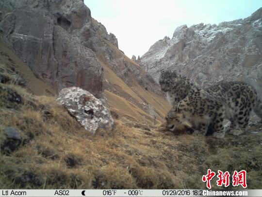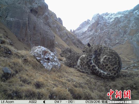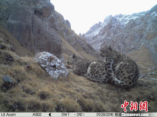 中新网西宁4月24日电 (记者 罗云鹏)24日,记者从北京山水自然保护中心证实,近期该保护中心牧民监测员首次在青海省玉树藏族自治州澜沧江源区域杂多县昂赛乡境内“捕获”雪豹求偶交配在内的多种野生动物影像资料。