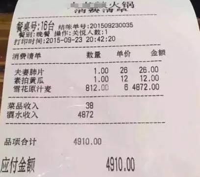 看完这些你是否很后悔,自己以前怎么不看看账单再结账呢?这些可能是服务员误操作,也可能是网友恶搞,但下面说的这个是真事儿。