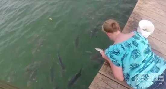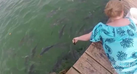 到水边,很多人为了将鱼儿吸引过来,经常会往水里面丢一些事物,然后那些鱼儿就会蜂拥过来了。图片中的这名女子也是这样做的,她准备给一些食物给这些鱼,然而让她万万没想到的是,接下来发生的事情让她细思极恐。