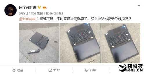 直播视频发布之后,远洋君还@了Thinkpad官方微博,并称:“主播都不易,平时直播被骂就算了。买个电脑也要受你歧视吗? ”