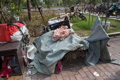 猫和狗平时就睡在这处路边的垃圾堆里。记者 葛亚琪 摄