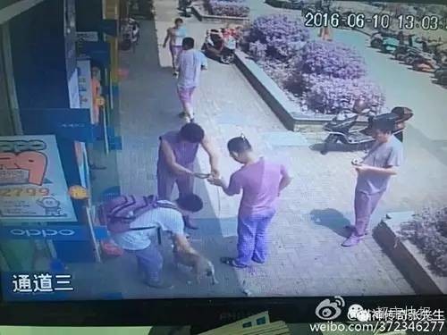 刘老板店门口的监控摄像头,也刚好拍到了这两女一男把狗带走的整个过程。