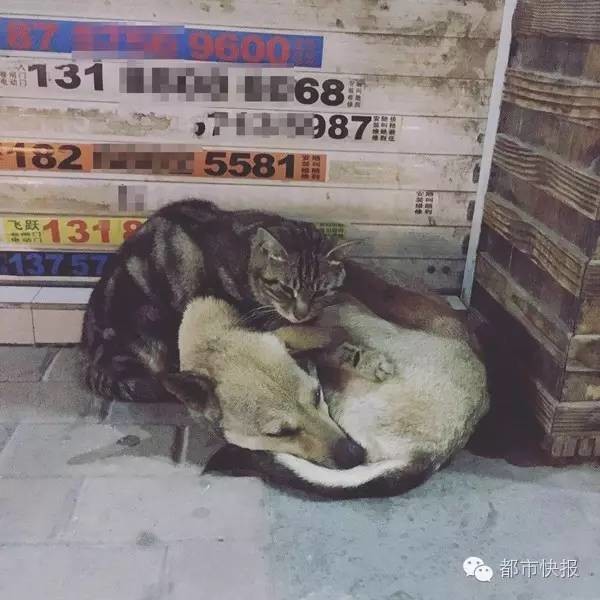 6月9日15:44, 网友“猫神传奇张先生”发微博说:杭州忠猫忠狗求助,一狗一猫被主人扔这里了,旁边的人说,它俩在这里好几个月了,说是它们主人把它们扔这里后坐地铁走了,经常看到狗狗在这里趴着,猫咪捡到吃的衔回来给狗狗吃,平时猫就在狗肚子上睡觉。坐标:杭州市地铁一号线下沙云水站A出口处,一家365+1牛仔裤店门口旁。博主来杭州临时办事,无法带走,希望好心人能一起救助收留它们,不要分开它们,谢谢!