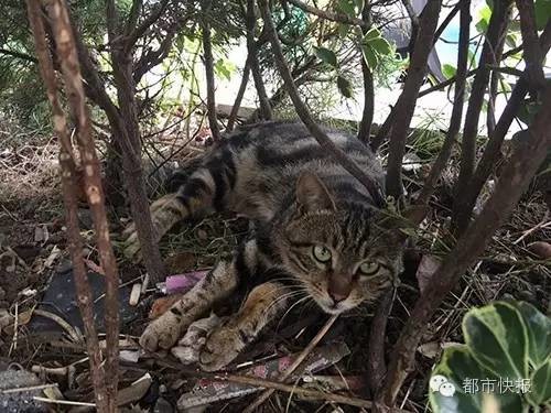 下午我们刚回到报社,接到刘老板电话,下午4点左右,逃走的猫咪回来了,正在它熟悉的花坛里独自睡觉……