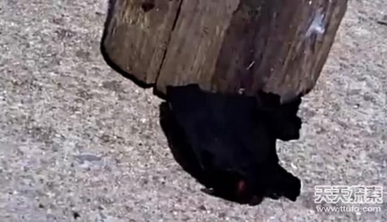 大约五分钟之后,黑布上冒烟了,开始有火了,可以看到黑布中间有白色的,黑布已经开始燃烧。