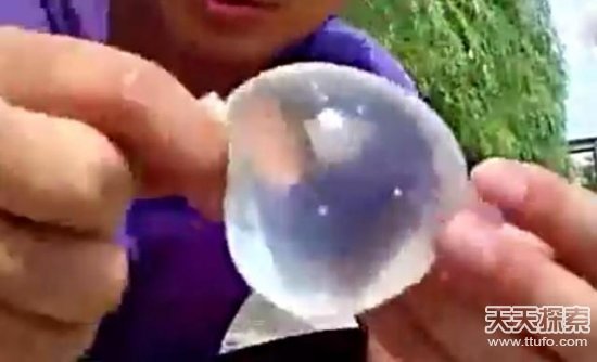 第三步:把避孕套里的水挤到一块成为一个圆球,做成一个聚光球。