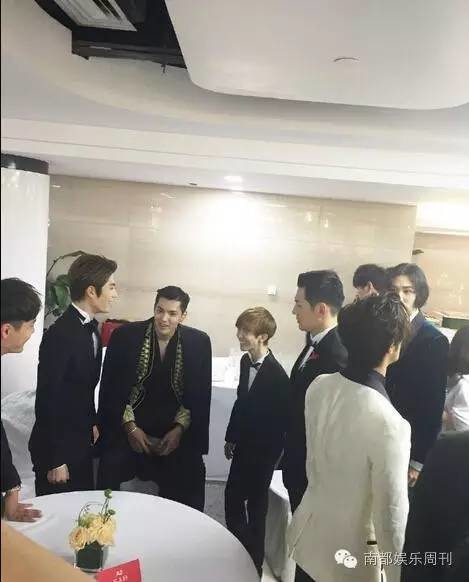 6月11日,某博主晒出一组男星在参加活动时后台聊天的照片,照片中,吴亦凡坐着,身边围绕着陈学冬、郭敬明、严屹宽等男星,大家在一起热聊。