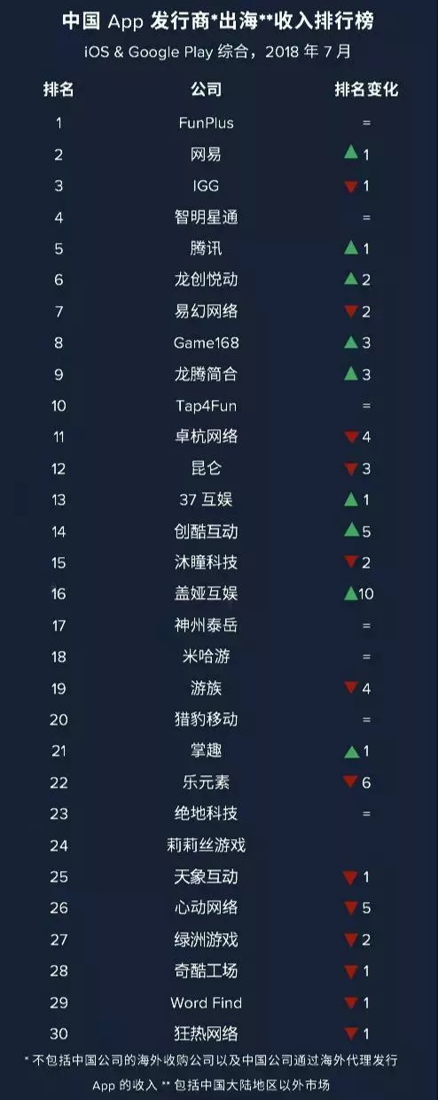 图4:点点互动登顶2018年7月中国App发行商出海收入榜