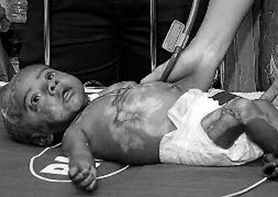报道称,这名男婴名叫拉胡尔,出生在印度廷迪瓦南村。他在9天大的时候身体第一次自燃起火,幸而被母亲扑灭。此后他又经历了3次自燃事件。
