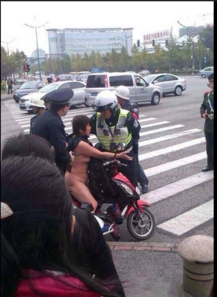 2013年11月12日早高峰时段,上海市青浦区外青松公路公园路口发生戏剧性一幕,一名中年妇女驾驶电动车逆向行驶被民警拦下后,竟将自己的衣服扒光,意欲夺车而逃。据目击者介绍,事发时,该女子驾驶两轮电动车在外青松公路由南向北逆向行驶,当行驶至公园路口时,被民警拦下。民警对其进行教育,由于逆向行驶,当事民警对其处以50元罚款。目击者告诉记者,该女子一直都不肯配合,将50元朝民警身上扔过去后,跑到路口开始拦截路口车辆。