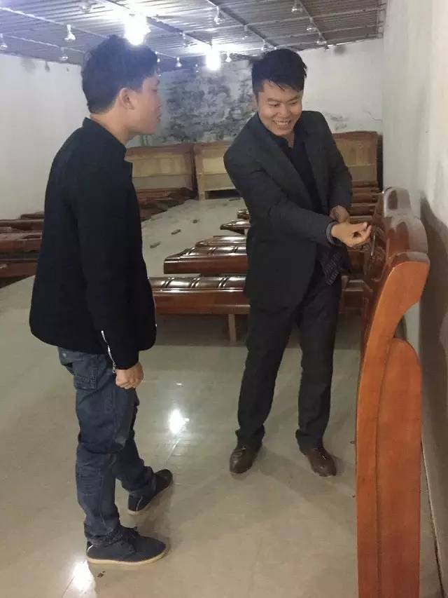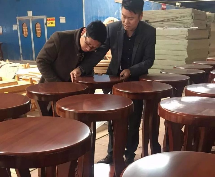 (上图:伊思曼家具漆总监刘光勇在南康宏兴实木家具厂)