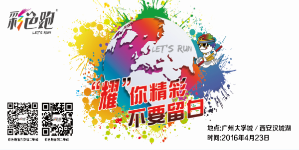 2016年彩色跑强势开展,1月9日在广州奥林匹克体育中心举办的盛宴得到广大彩粉们的赞可和支持,4月23日将在广州大学城、西安汉城湖同一天开跑,展开一场双城的角逐。
