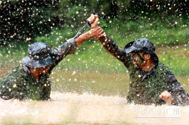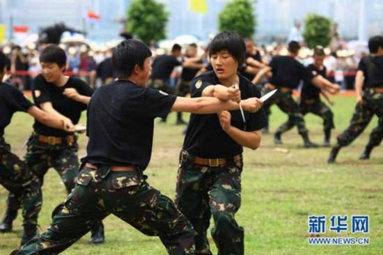 此次格斗战技演练所使用的兵器很有意思,格斗使用的匕首闪闪发亮,但仔细看过去,竟然是木质的匕首,并非真家伙。而解放军的特战部队进行格斗搏击训练时,均普遍使用真正的匕首,即便是女兵也不例外。