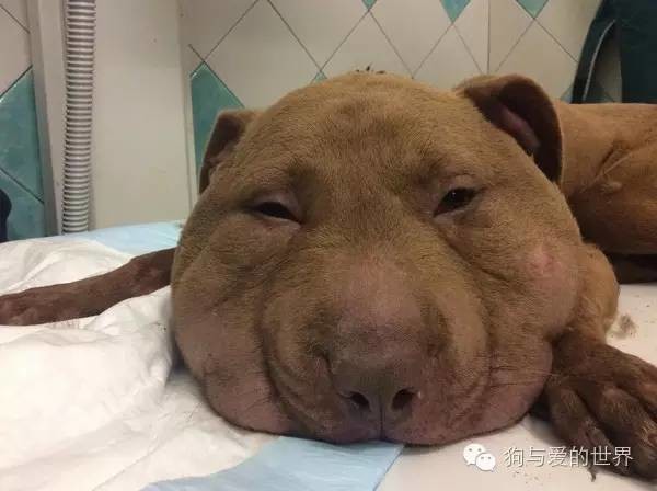 下面这只大头狗狗名叫Palla,当人们在意大利萨丁尼亚岛发现它时,它的头肿胀得把眼睛挤成眯眯眼,看上去十分可怜,而它并没有被马蜂蛰,这究竟是怎么回事呢?