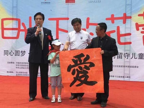 2016年5月31日至6月1日,为了贯彻落实《国务院关于加强农村留守儿童关爱保护工作的意见》精神,积极响应国家扶贫攻坚的号召,值此六·一国际儿童节之际,由中国民族贸易促进会文化交流委员会、中华志愿者协会文化艺术交流委员会和中共大同市委宣传部联合举办的《阳光下的花蕾》同心圆梦·美丽中国行爱心公益明星慰问留守儿童专题公益演出活动,在国家级贫困县山西省大同市大同县西册田小学举行。