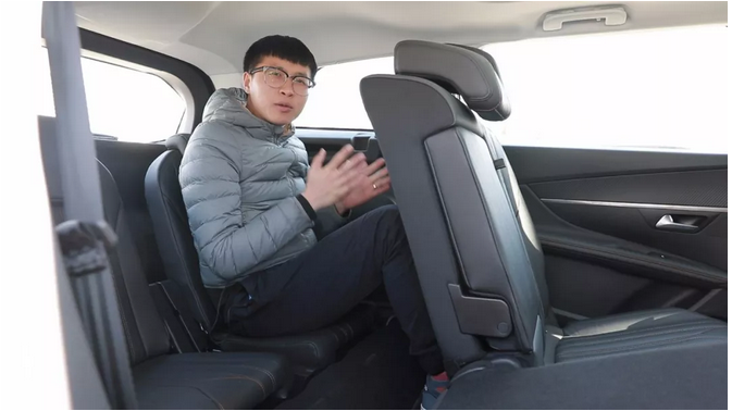 坐进5008的第三排,头部空间1拳,腿部空间3指,空间表现还行,可以应对个短途出行。