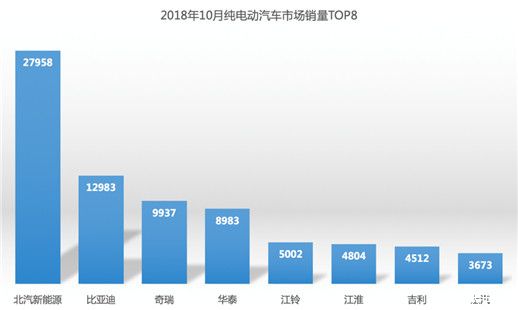 2018年10月纯电动汽车市场销量TOP8(数据来源:乘联会)