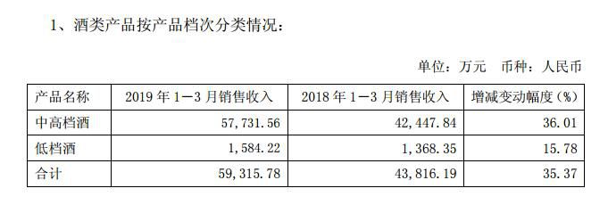 4月25日,舍得酒业股份有限公司(以下简称“舍得酒业”)发布2019年第一季度报告。报告显示,今年第一季度,公司实现营收6.97亿元,同比增长34.06%;实现利润1.01亿元,同比增长21.53%。