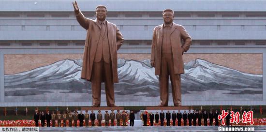 资料图:位于朝鲜平壤市中心万寿台上的金日成、金正日铜像