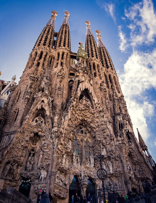 圣家族大教堂是巴塞罗那甚至西班牙极负盛名的观光胜地和地标,建造始于1882年,1883年由年仅31岁的建筑天才高迪接手成为总建筑师,直至1926年因车祸去世,这座教堂可谓是他一生心血的结晶。