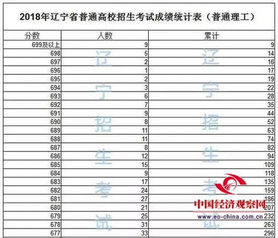 所谓“一分一段”,是以“1分”为单位,统计获得该分数的考生人数和累计人数。文理科分开排名,每一个分数段上有多少人一目了然。下图是今年辽宁省的理工类考生的部分“一分一段表”: