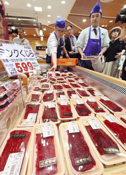 8日,大阪阪急百货店正式上架了首批鲸鱼肉图源:《读卖新闻》