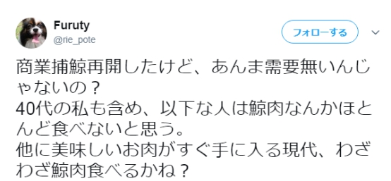 还有网友表示,很多日本人现在完全不想吃鲸鱼肉了,即使不吃,对日本食物也没有特别的影响。↓