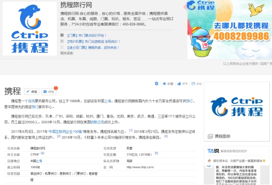 公开资料显示:携程创立于1999年,总部设在中国上海。2003年12月,携程旅行网在美国纳斯达克成功上市。2018年10月,《财富》未来公司50强排行榜发布,携程排名第四。↓↓