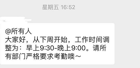 7月12日(上周五)下午,网易传媒内容部有人突然接到通知,在没有上下文的前提下,突然将工作时长从正常的9点半到6点半,延长到995工作制,且没有任何加班补贴。