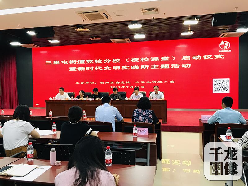 7月15日晚,北京三里屯地区党校分校(夜校课堂)正式揭牌成立。图为揭牌仪式现场。千龙网发
