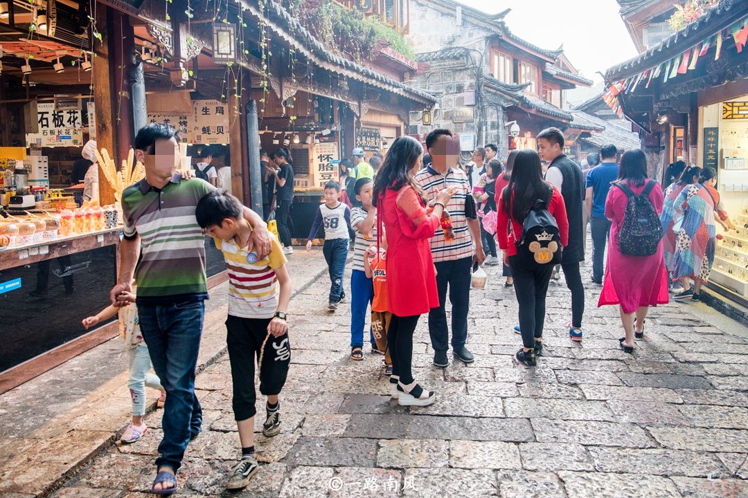 中国人骨子里爱凑热闹,美其名曰“感受氛围”,白天的大研古城和束河古镇人气不是最旺的,一到了傍晚,人潮便从四面八方涌向主街,场面壮观,让人不由得感叹:“中国人真多”!