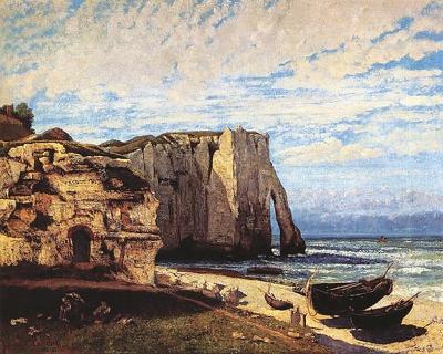 《暴风雨后的埃特勒特崖》堪称库尔贝风景画的巅峰之作。在这幅画里,我们或许可以感受到,为何后来的印象派画家们会如此钦慕库尔贝的光与自由。说起来,埃特勒特悬崖自19世纪起就吸引了很多画家前去,那里的风景确实迷人:天边层次分明的晚霞和光线的质感都很出色。而在这幅画中,库尔贝摒除了一切描绘性的语言,没有人影,也没什么轶事情节,就纯粹地表现大自然:他很好地平衡了画面的结构,岩石和沙滩、天空和海洋,以及每一处的大自然细节都是实在的、清楚的;尤其是,你若足够敏感,可以察觉到那暴雨过后清澈的光线。正是这种对光线的把握和细腻表现,不仅令后来的印象派画家们效仿,也奠定库尔贝现实主义风格领军人物的地位。