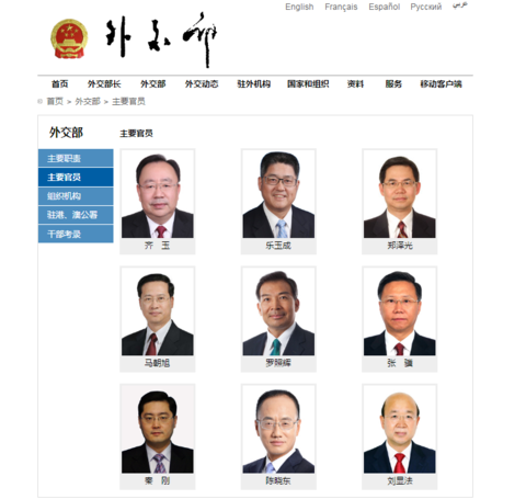 今年以来,外交部人事调整频繁,“主要官员”一栏已经有了六张新面孔: