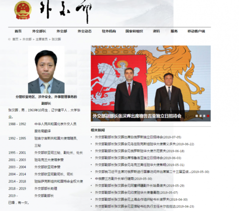 北京青年报记者注意到,外交部官网近日更新,外交部副部长张汉晖已不在“主要官员”一列。