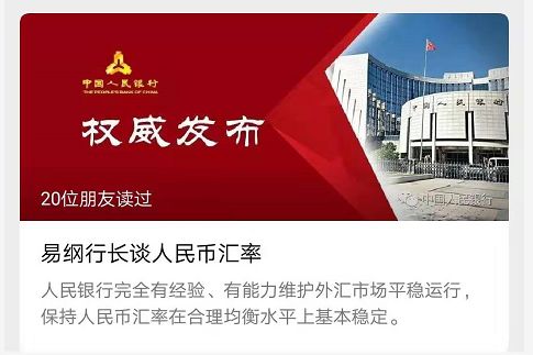 人民银行负责人表示,近年来在应对汇率波动过程中,人民银行积累了丰富的经验和政策工具,并将继续创新和丰富调控工具箱,针对外汇市场可能出现的正反馈行为,要采取必要的、有针对性的措施,坚决打击短期投机炒作,维护外汇市场平稳运行,稳定市场预期。