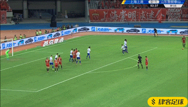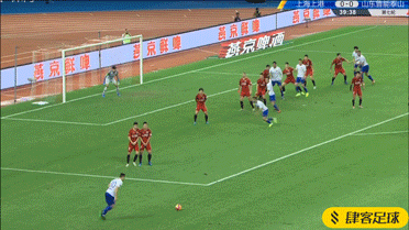 第40分钟,鲁能前场任意球机会,莫伊塞斯起球到门前,费莱尼头槌破门!上港0-1鲁能。