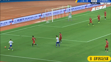 下半场补时第4分钟,奥斯卡抽射破门,但裁判判罚杨世元犯规在先,进球无效。