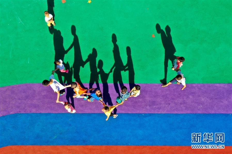 孩子们在太原市社会(儿童)福利院内玩耍(8月31日无人机拍摄)。 新华社记者 曹阳 摄