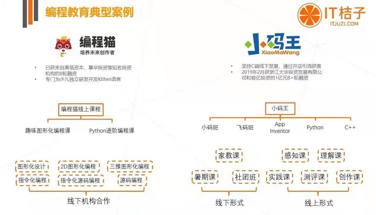 「小码王」不同于其他编程教育机构,其选择从线下入手,并且通过提供专业课程,使得学生可以对编程有足够的认识和充分的理解之后,再去进行编程的实践。至今,「小码王」已获得四轮融资。