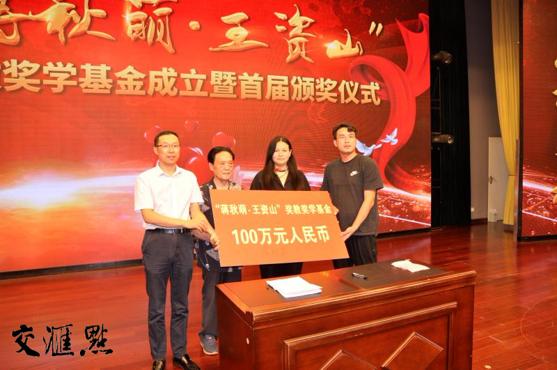 王资山一直挂念着家乡的教育,他“忘不了儿时的玩伴,忘不了外出求学时隔壁王奶奶塞在手中滚热的鸡蛋。”60年后,王老的这种恋乡情节愈发强烈:为家乡学校设立奖教奖学基金,帮助后生成长。王资山将这种想法和江苏融桥集团董事长蒋秋萌女士交谈后,得到这位诤友积极支持,两人各出资50万元,共同设立“蒋秋萌·王资山”奖教奖学基金。