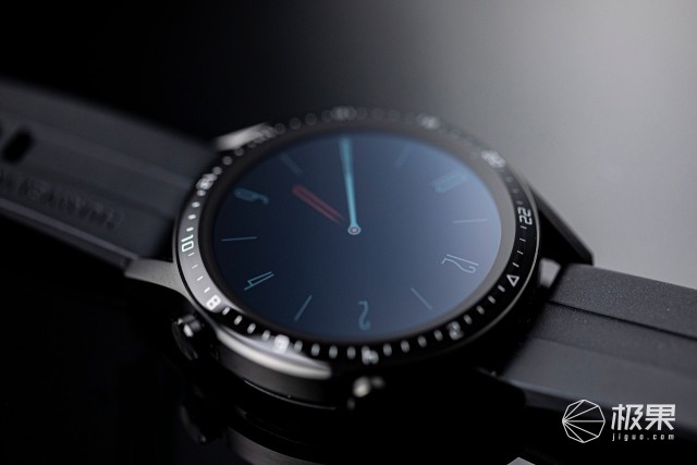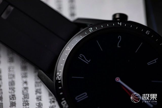 极果君仔细摸了一下,表圈外侧的这圈数字刻度并不是印上去的,而是通过点刻工艺雕琢而来,虽然是一处装饰,也足以看出这次Watch GT2的用心程度。