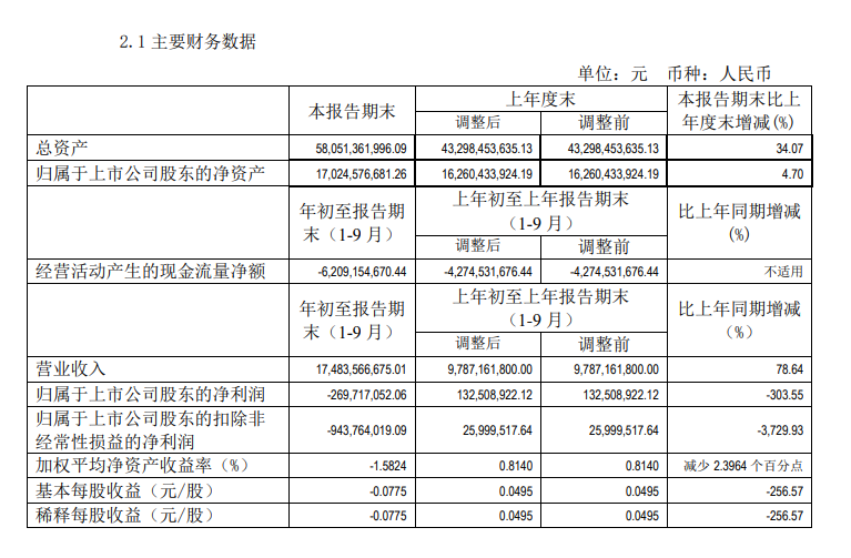 北汽蓝谷(600733.SH)发布2019年前三季度报告。报告显示,1-9月,北汽蓝谷实现营业收入174.84亿元,同比增长78.64%;归属于上市公司股东的净利润亏损2.7亿元,同比下降303.55%;归属于上市公司股东的扣非后净利润亏损9.44亿元,同比下降3729.93%。